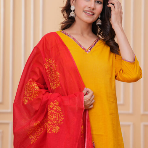 Festive & Wedding Wear Cotton Kurti Set for Women | Heavy Embroidered Dupatta Set
