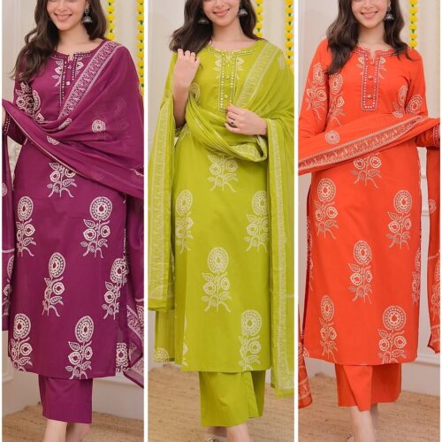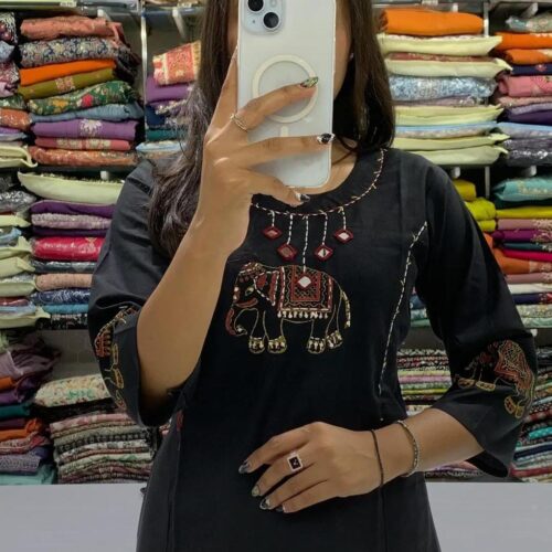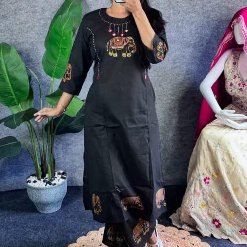 Heavy Cotton Embroidered Kurti with Pant | Pure Cotton Ethnic Wear