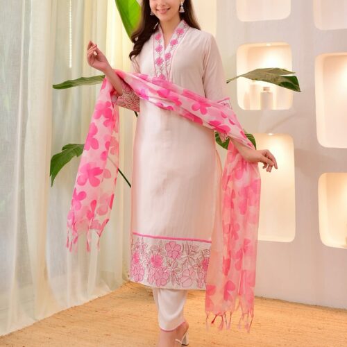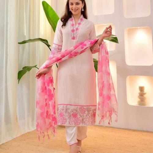 Navratri Special 3-Piece Cotton Flex Suit | Blush Pink Embroidered