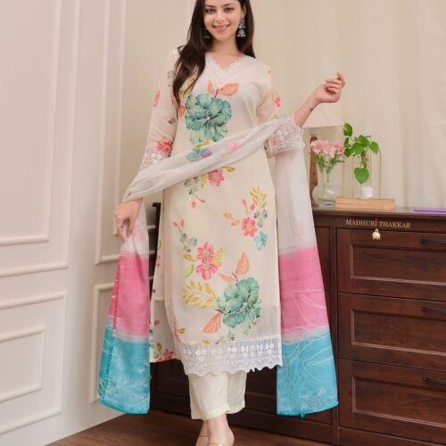 New Arrival Reshmi Organza Suit Set – Heavy Digital Print & Hand Work | Showroom Quality