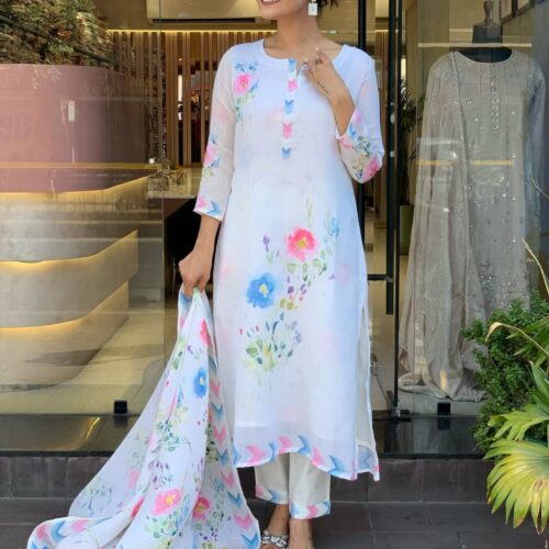 Festival Special: Anarkali Flared Kurti Pant Dupatta Set for Diwali & Weddings