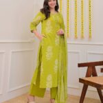 Discover elegance with VanyaLifestyle’s Multi Color Cotton Kurta Pant Set, crafted in premium Jaipuri hand block print. This designer A-line kurti with ankle-length plazo is perfect for festive occasions, Navratri celebrations, Karwa Chauth , and casual outings.