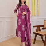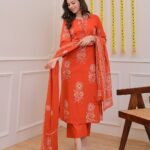 This red festive kurta set is a must-have for women who love comfortable yet stylish ethnic wear. Pair it with minimal jewelry to complete your Navratri-ready look and Karwa Chauth.
