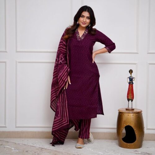 Discover elegance with VanyaLifestyleβs Cotton Embroidered Kurti with Pant Set, crafted in premium Jaipuri hand block print. This designer A-line kurti with ankle-length plazo is perfect for festive occasions, Navratri celebrations, and casual outings.