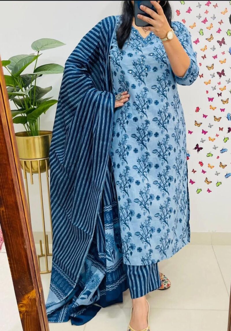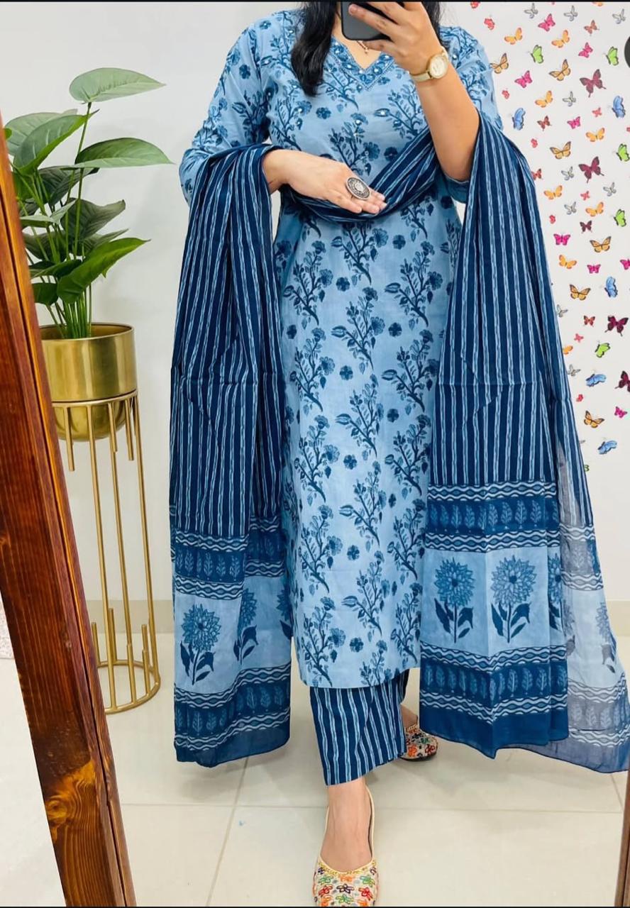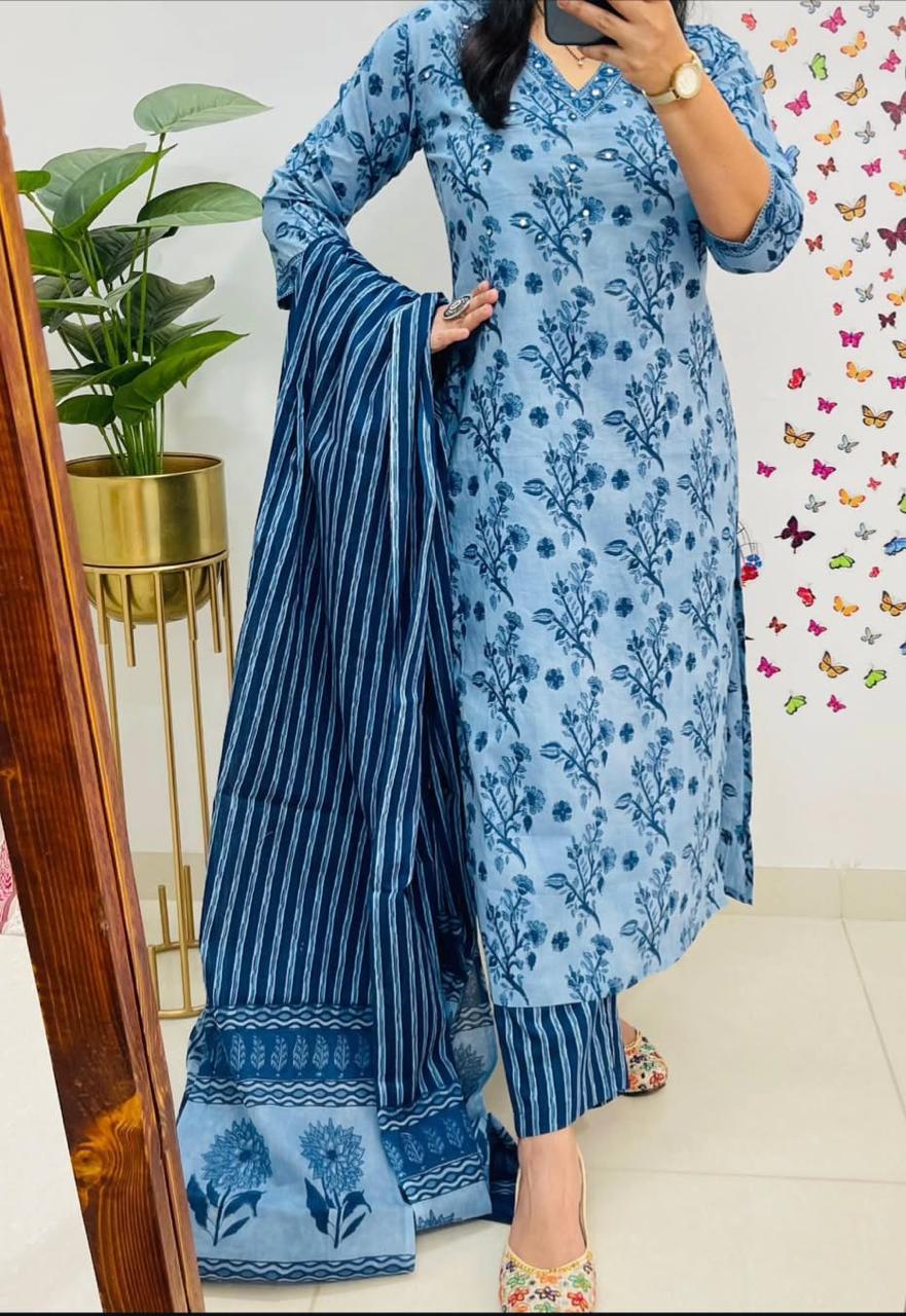 Discover elegance with VanyaLifestyleβs HCotton Kurti Pant Dupatta Set, crafted in premium Jaipuri hand block print. This designer A-line kurti with ankle-length plazo is perfect for festive occasions, Navratri celebrations, and casual outings.