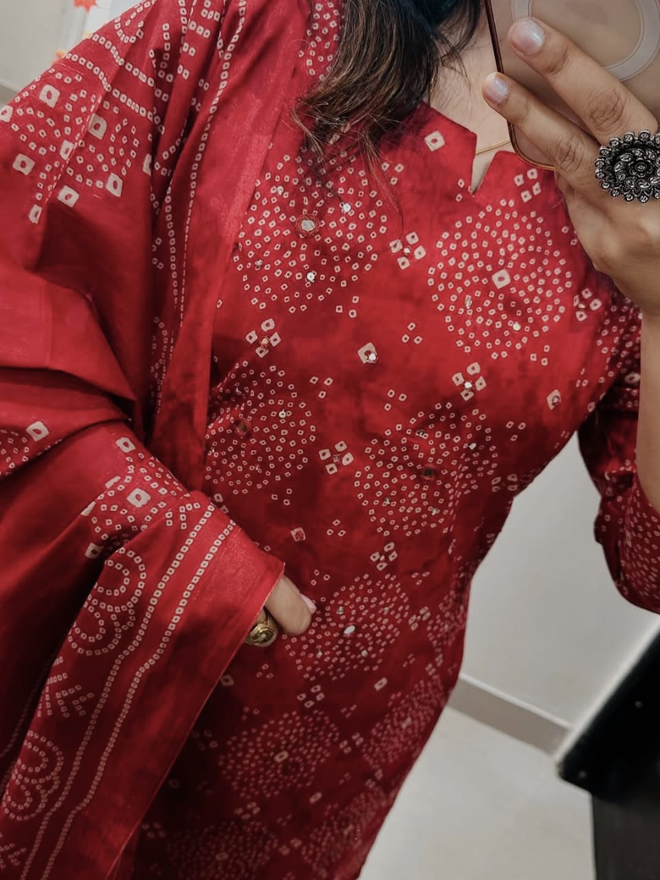 Discover elegance with VanyaLifestyleβs Bandhej Printed Cotton Kurta Pant Set, crafted in premium Jaipuri hand block print. This designer A-line kurti with ankle-length plazo is perfect for festive occasions, Navratri celebrations, and casual outings.