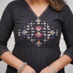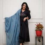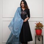 Step into festive charm with this olive and black embroidered Anarkali set. Its timeless color palette and detailed craftsmanship make it a wardrobe must-have. Pair it with silver jewelry and block heels for a complete ethnic look — perfect for Navratri, festivals, and family gatherings.